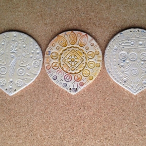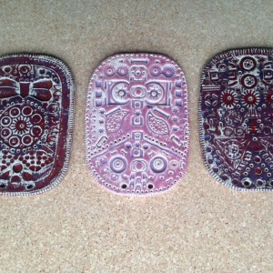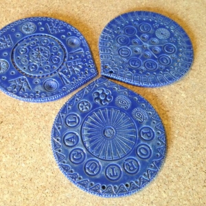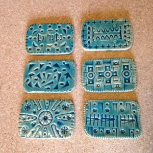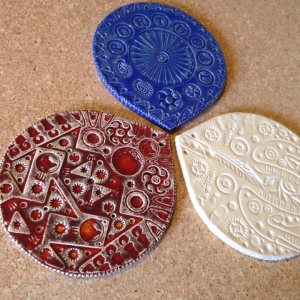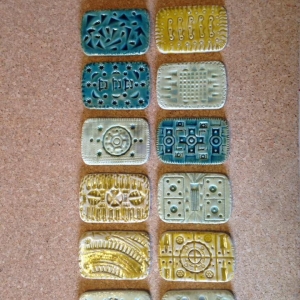 In unseren Projekten mit Kindern und Erwachsenen können die Teilnehmenden eigene Keramik-Fliesen herstellen. Diese werden dann in der Gartengestaltung verwendet.